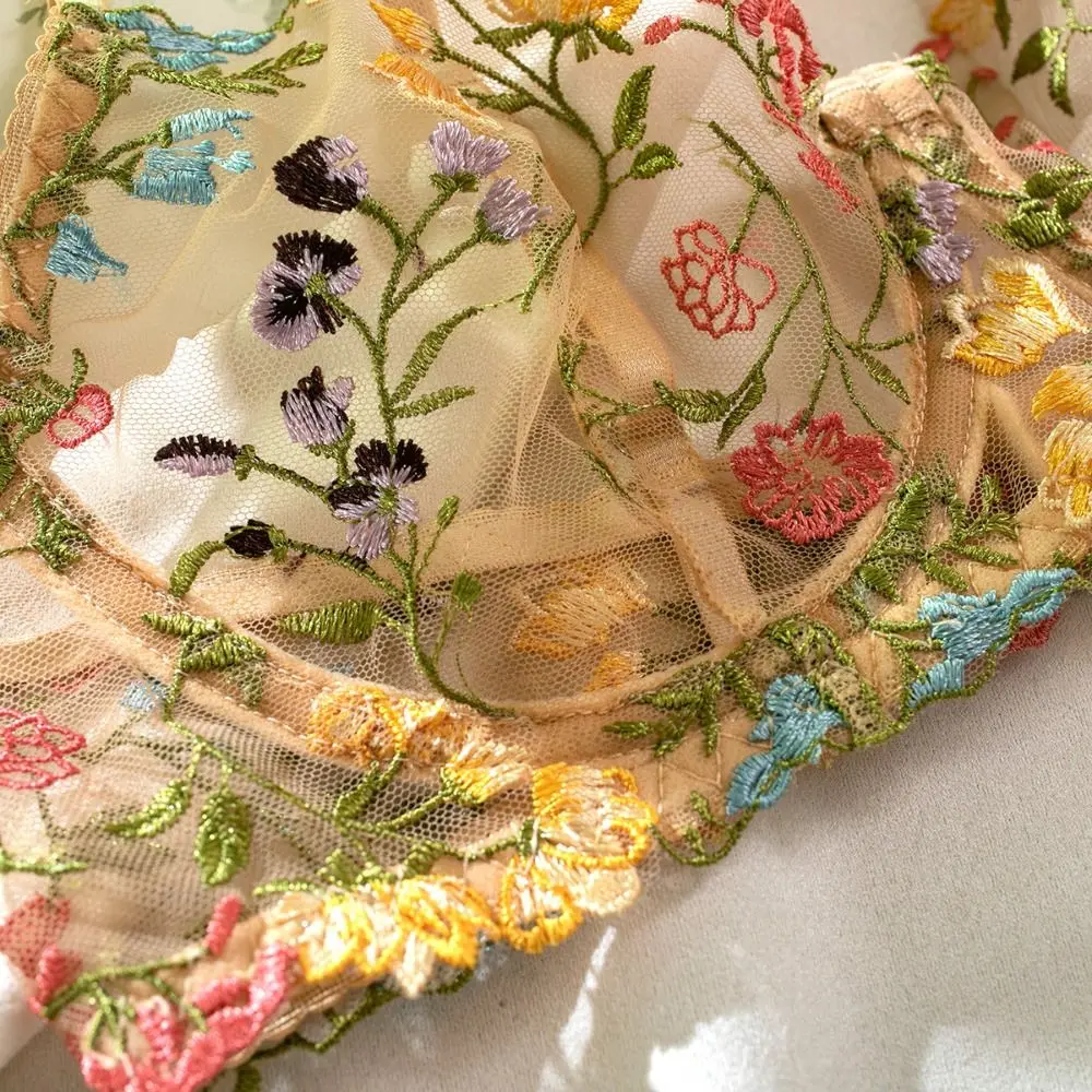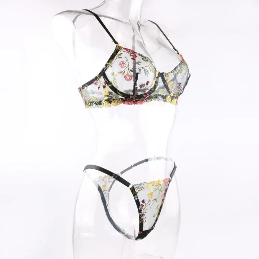 Flirty Sheer Lace Lingerie Set – 2-Piece Floral Bra & Panty for Women