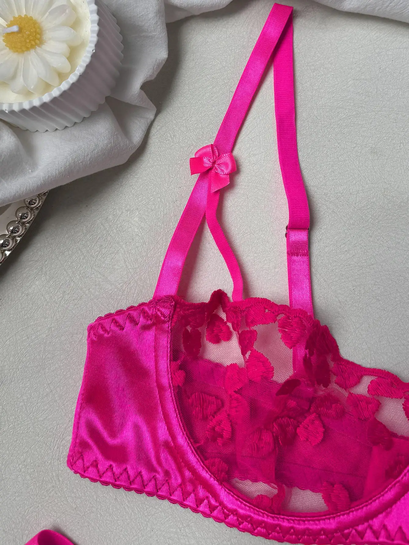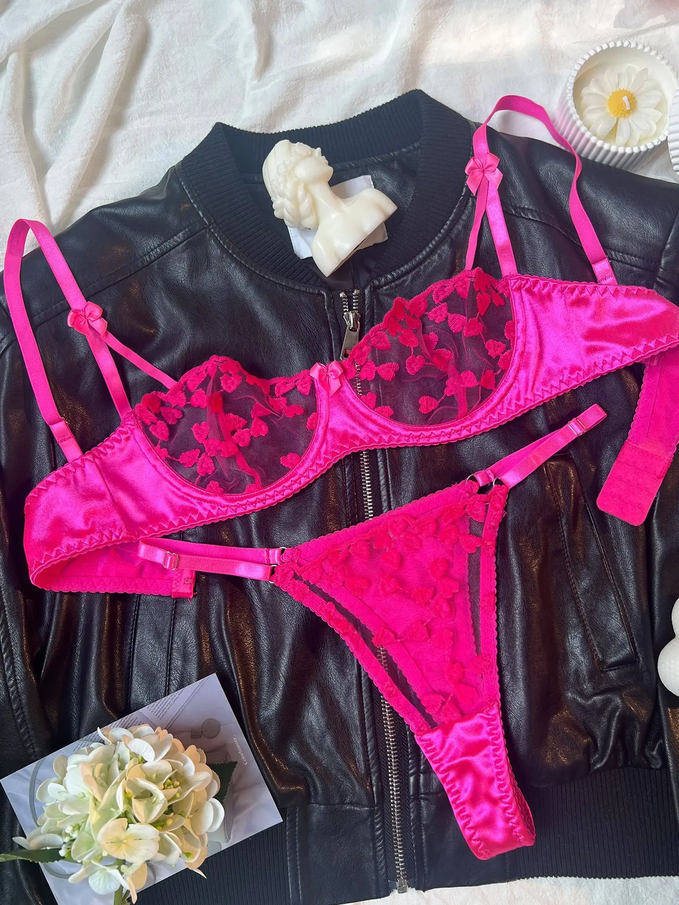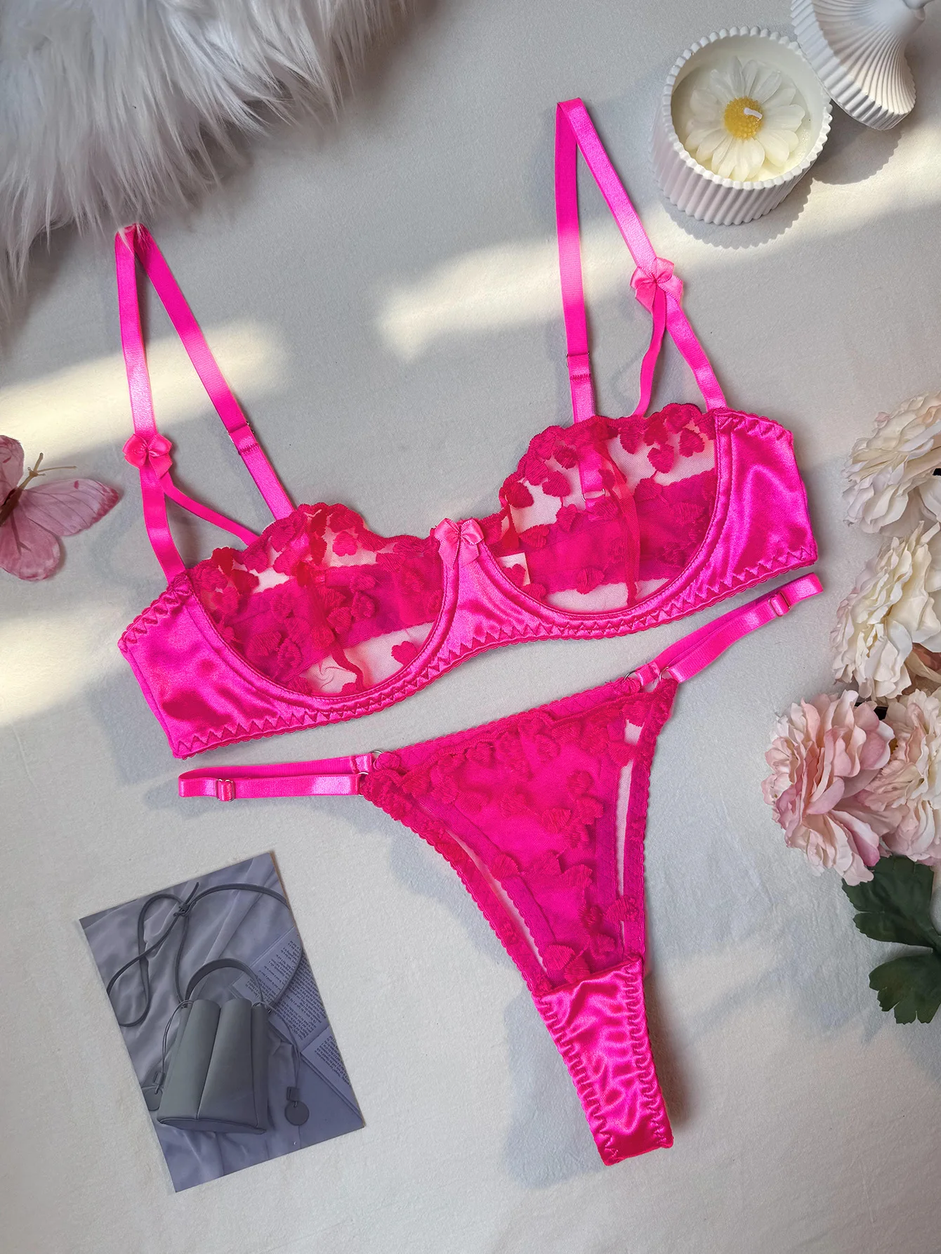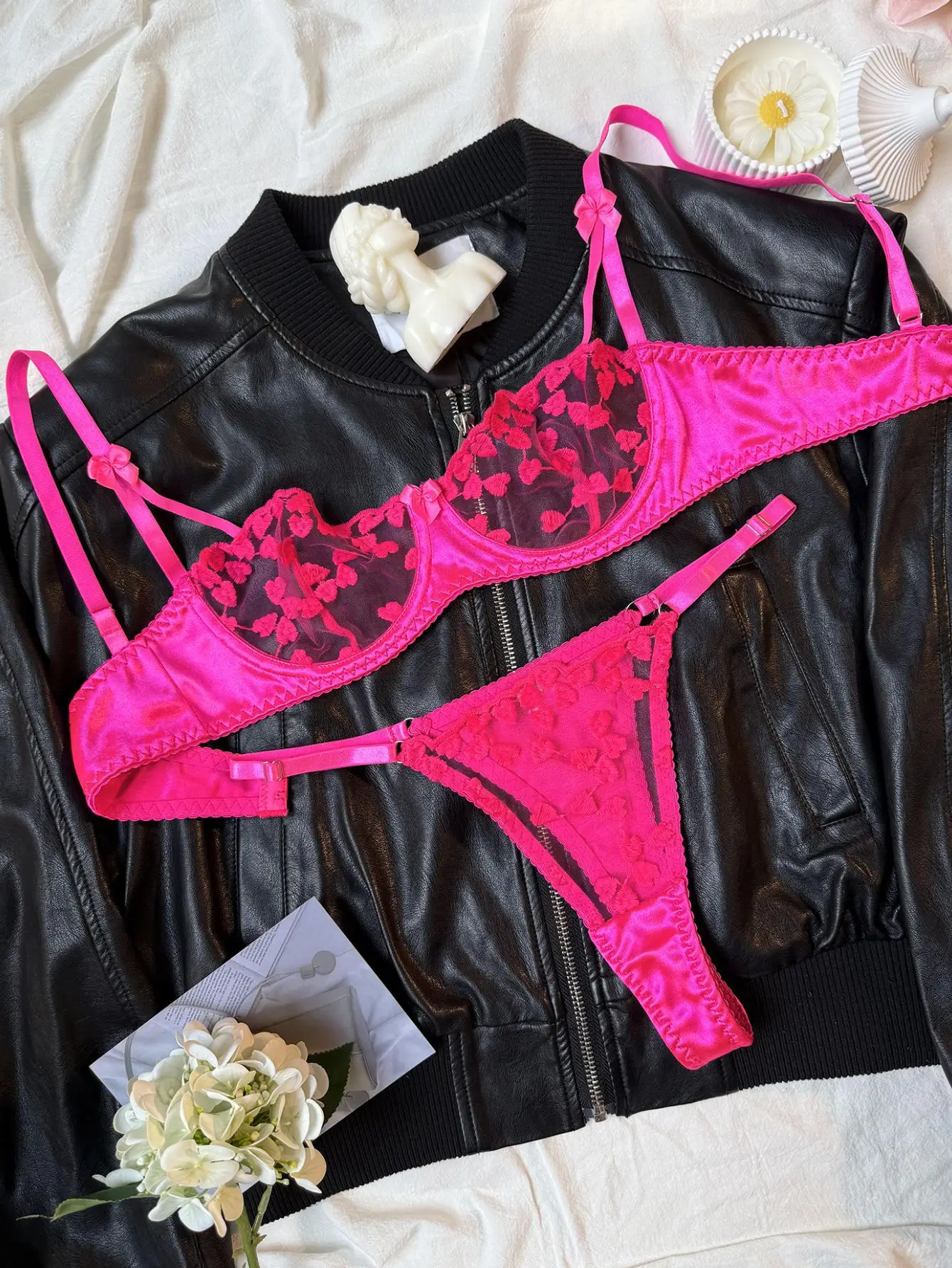 Sugar Midnight Floral Lace Lingerie Set – Sheer Backless Bra & Panty Set with Embroidery Detail | Elegant Women’s Underwear
